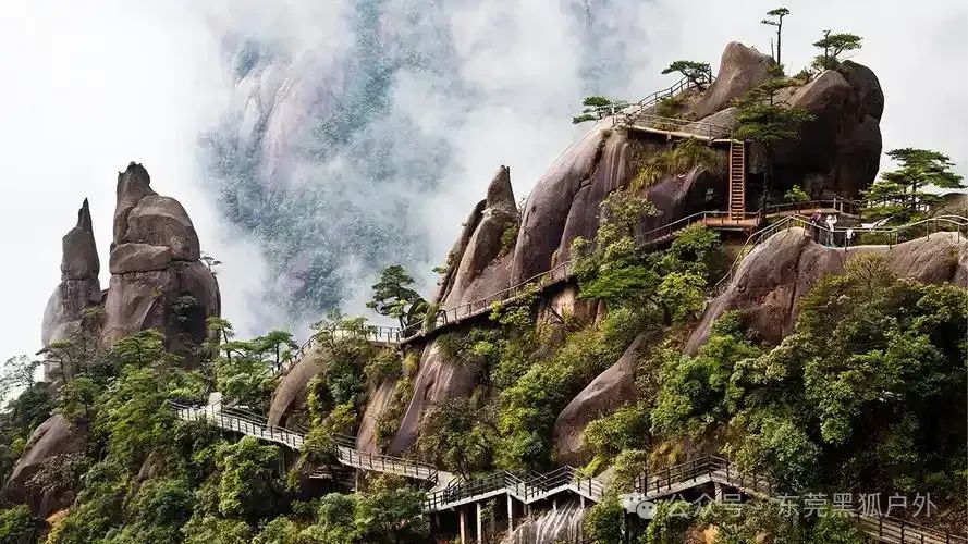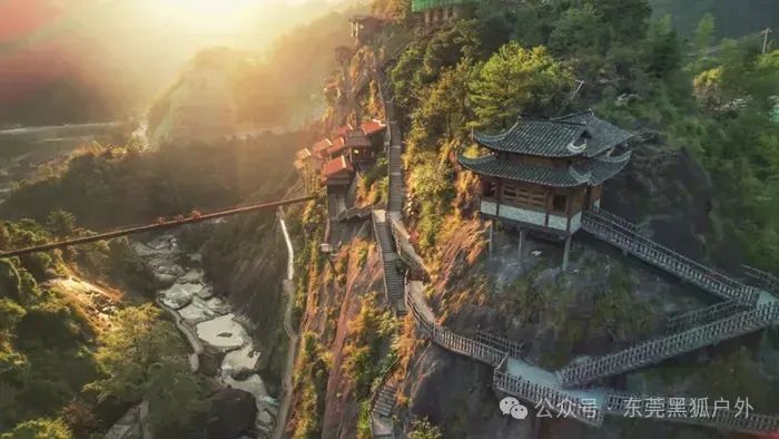 望仙谷主要景点:雷打石、三口锅、望仙瀑、三!叠水、玻璃栈道、古镇老街!悬空民宿、天心禅寺等