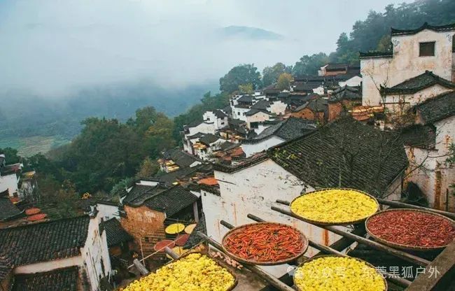 篁岭,位于江西省上饶市婺源县东北部,经典的徽派建筑,也是著名的"晒秋"文化起源地,也是一座距今近六百历史的徽州古村。篁岭属典型山居村落,民居围绕水口呈扇形梯状错落排布。