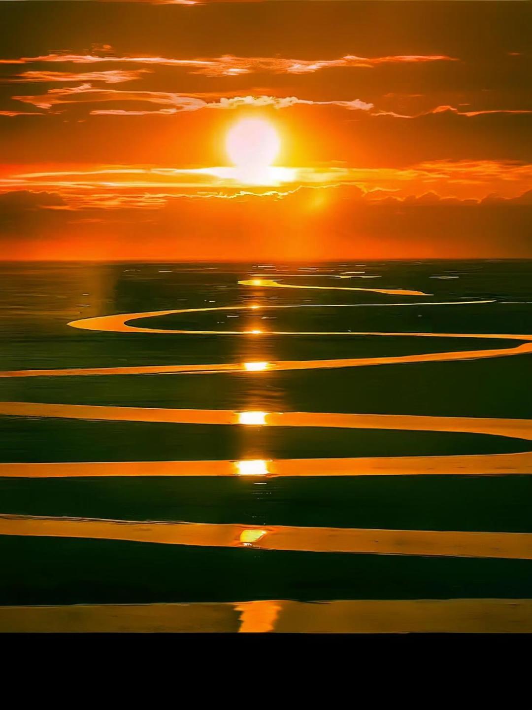 能在沙漠绿洲博斯腾湖,看一次日出何其幸运