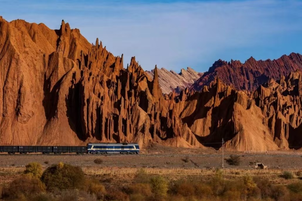 如果时间赶巧,可以看到红石林前面经过的火车,当火车经过时,欢迎来到“西部世界”。