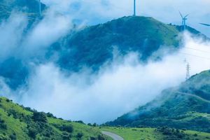 新兴风车山是广东省新兴县的水源山是天露山的一条支脉海拔1137米因山顶有46座风力发电塔而闻名