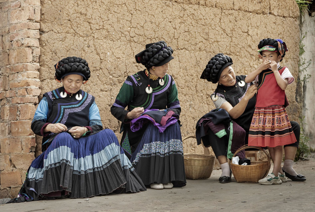 ▲凉山深处的村庄 穿着彝族服饰的老人孩子