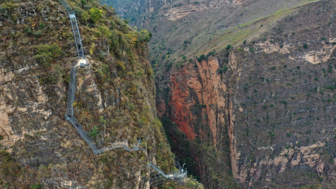 游玩悬崖村,攀爬钢梯,沿着2556级钢梯攀爬,是悬崖村最独特的体验,单程约2-3小时,沿途设有休息观景平台,可欣赏壮观的峡谷风光(只有一条钢梯上下,请根据自身体力量力而行,走不动了就原路返回,我们入住的酒店在悬崖村山脚)