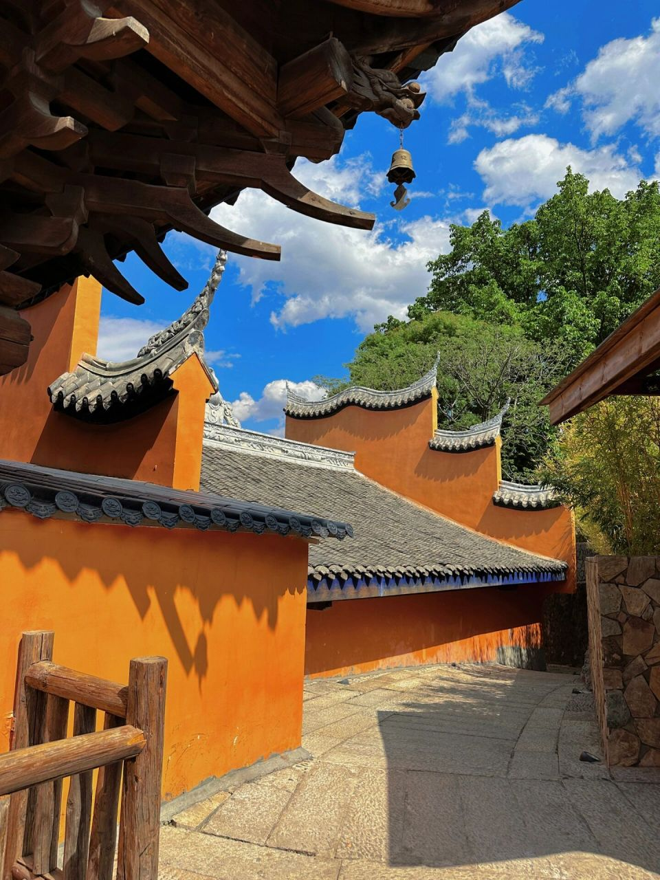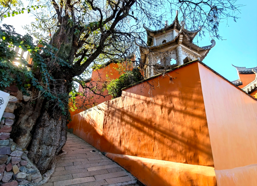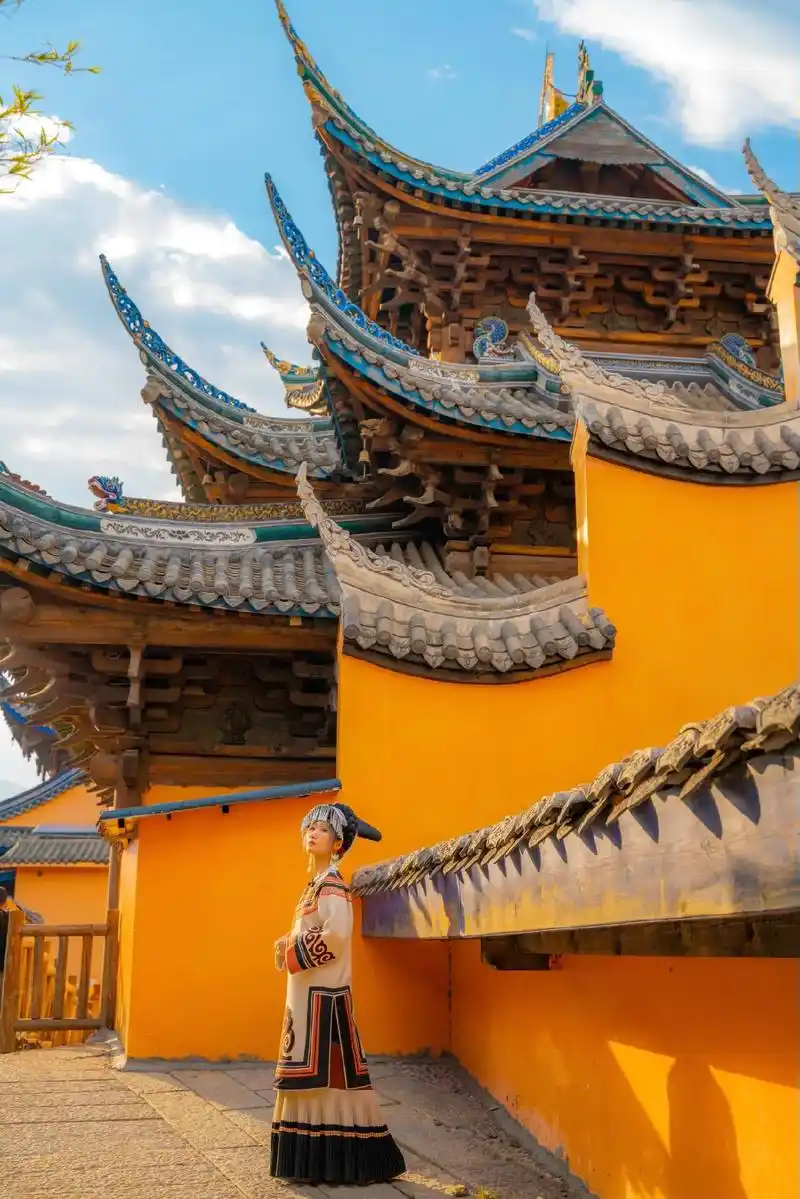 游玩【大石板古村】,灵鹰寺,大石板村最大的亮点,拥有600年历史,建筑精致,佛教文化气息浓厚。其橙色墙面和屋檐是绝佳的拍照背景,也可穿越古村小巷,拍照打卡(游玩约2小时)