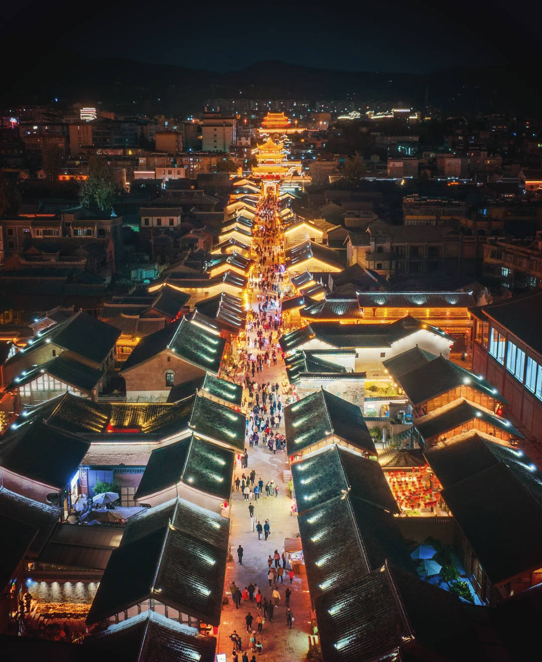 白天人群熙攘,可以一睹古城风采,晚上华灯初上,流光溢彩,建昌古城的夜景,更让无数人流连忘返。建昌古城的夜晚未曾孤寂,仿若一颗在黑夜中熠熠生辉的明珠,灯火璀璨,人流如潮,夜游古城,似赴一场盛会。