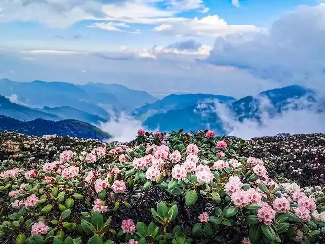 螺髻山,主峰屹立,海拔高达4359米,其上气候变幻莫测,云雾层叠。这里原始植被茂密,而最为引人注目的是那漫山遍野的索玛花。每逢5月开始,这些索玛花便竞相绽放,色彩斑斓:粉红的娇嫩、嫩黄的耀眼、纯白的无暇……此时,正是登山踏青、赏花的好时节。(往年的螺髻山索玛花期:4月-5月初,最终花期以今年实际开花为准)