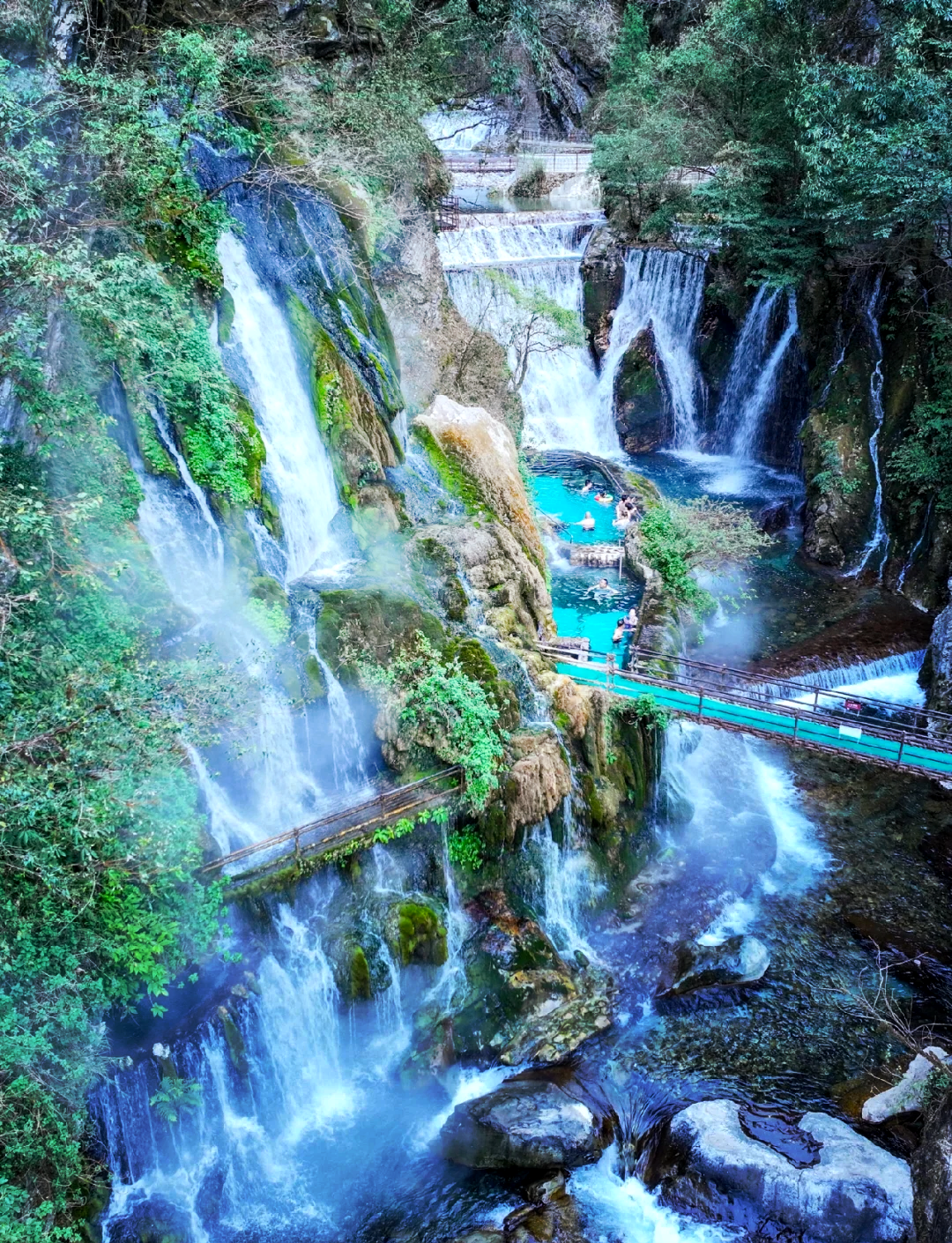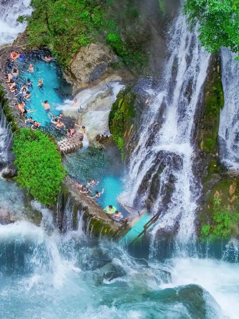 ♨️温泉体验:景区有三处泡温泉的地方,悬崖瀑布温泉、温泉群岛和山顶的溶洞瀑布温泉。上山第一个悬崖瀑布一定要拍,非常出片;再往上走是大大小小的泡池;山顶的洞穴瀑布温泉,水深约1.5米,不会游泳也没关系,扶着崖壁就能走过去,拍照堪比巴厘岛。