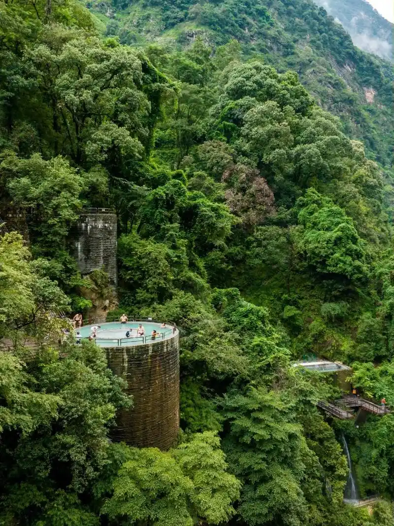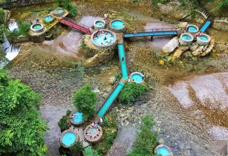 【螺髻山九十九里温泉瀑布】,这里是世界最大温泉瀑布群,可泡露天温泉池,也可通过狭小通道到达溶洞温泉,还有位于山顶视野极佳的观景汤池,从一个池子到另一个池子有一定的距离,景区温度低,要裹好浴巾保暖(游玩约3小时)