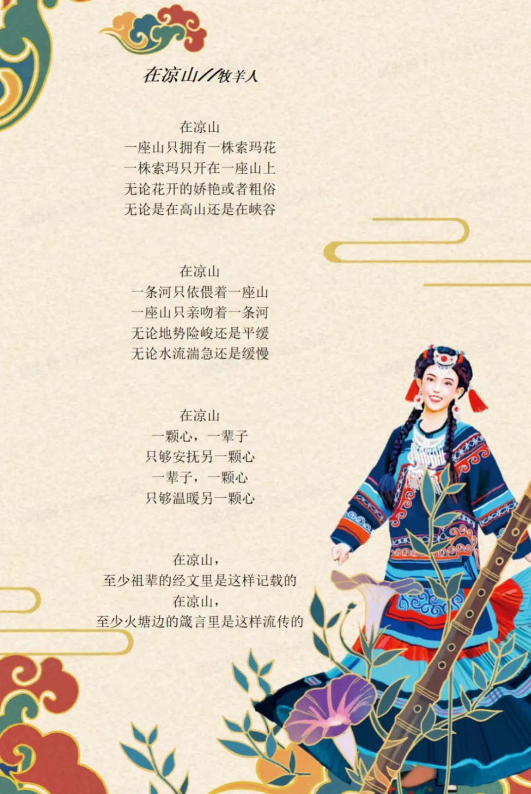 “凉山”并非单指一座山,而是一列列山脉的统称,同时它也是四川省彝族自治州的名字。“凉山”不只是地理概念,更蕴含着深厚的文化底蕴,是极具张力的文化符号。它承载着古老文明的传承,也见证着时代浪潮下的蜕变。这片土地的复杂性,恰恰构成了它的独特魅力,它是令无数彝族儿女日思夜想的家乡,是彝族人民世世代代生长的地方,它是一片有温度的土地,藏着彝族的千年秘密,藏着多彩的绚烂童话,等待着我们的探访。