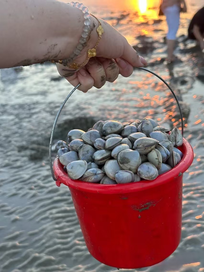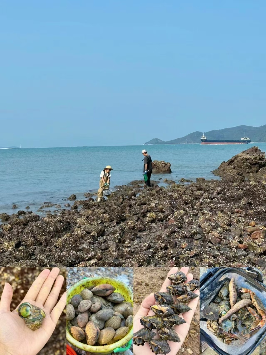 在赶海时,人们可能会捡到贝类、螃蟹、海蛎子、海螺等各种海洋生物,还可能挖到蛤蜊、蛏子等藏在泥沙中的海鲜。这不仅是一种获取食材的方式,也是一项充满乐趣和探索性的户外活动,能让人们亲近大海,感受海洋的魅力和大自然的神奇。