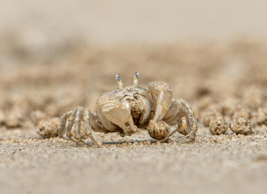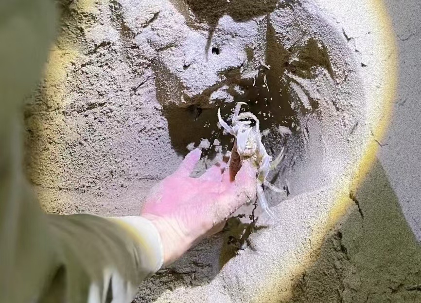 夜晚的沙滩,沙蟹们开始活跃起来,这是捕捉它们的最佳时机!
