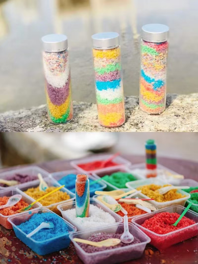 我们为大家精心准备了丰富多样的材料,可尽情发挥创意,调配出独一无二的彩虹盐色彩组合。
