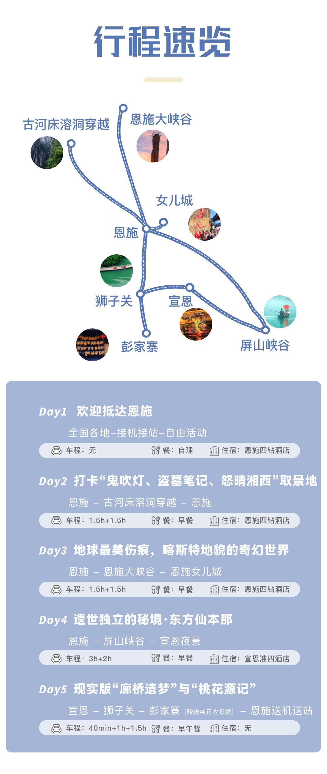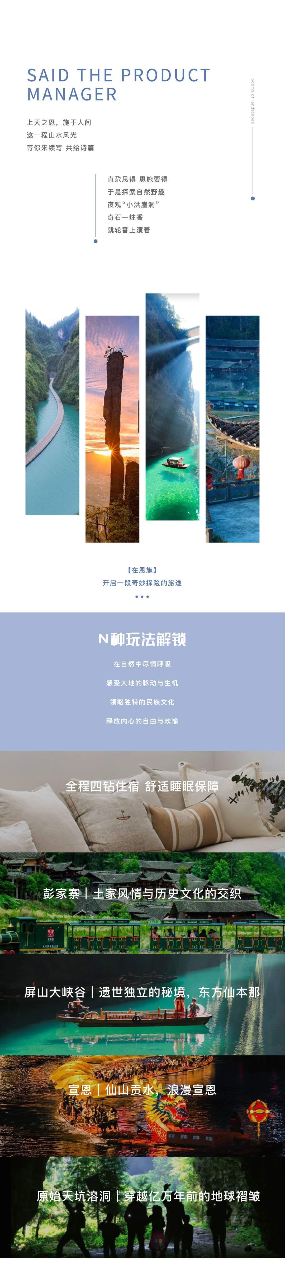 2.由于此产品游览区域属于恩施土家族苗自治州,经济发展缓慢,物资匮乏,旅游资源条件有限,无法与一二线城市旅游资源比较,如遇相关问题敬请谅解