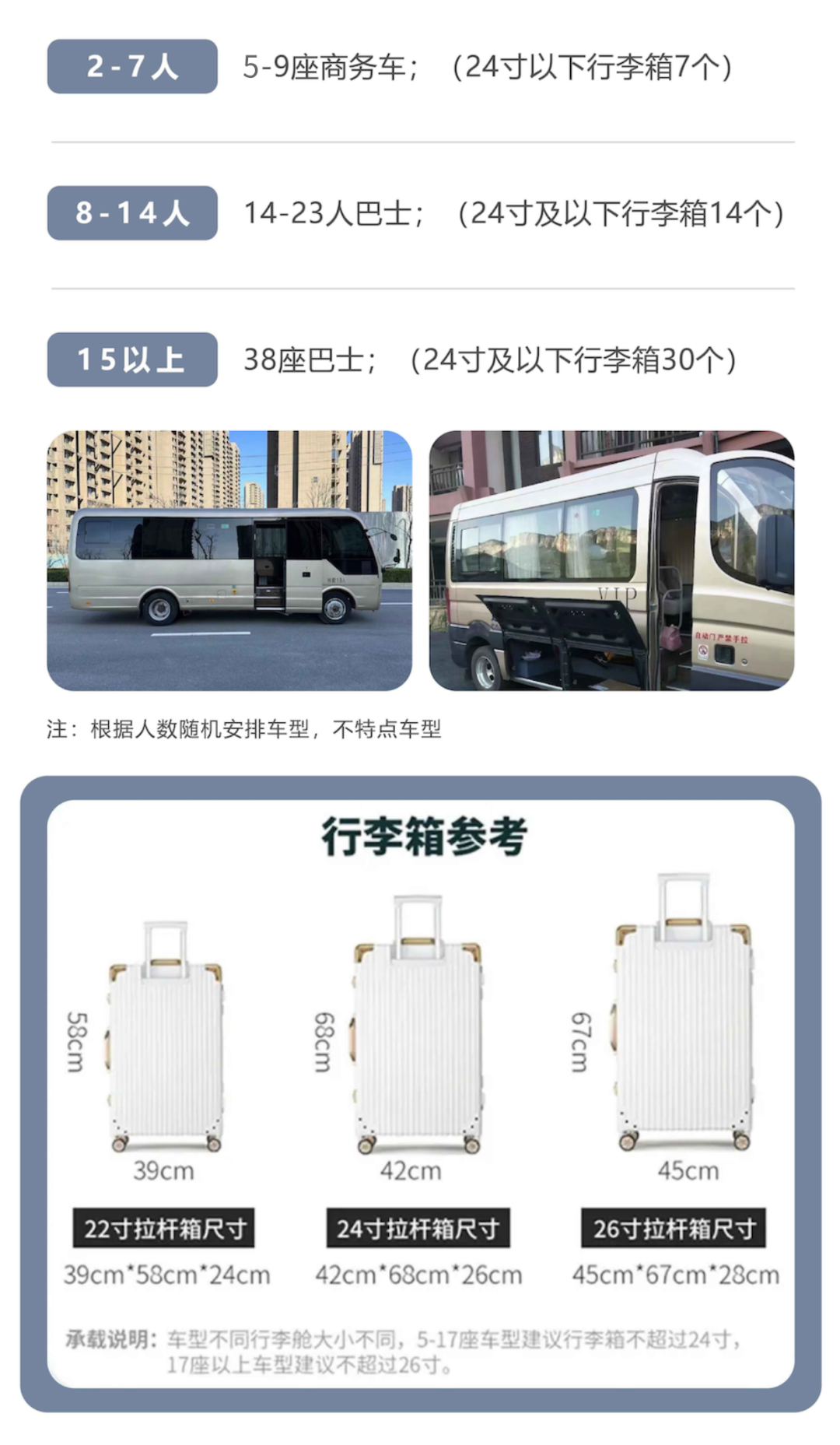 如果2-3人安排5坐车;4-6人安排7坐车,7人安排9座车;