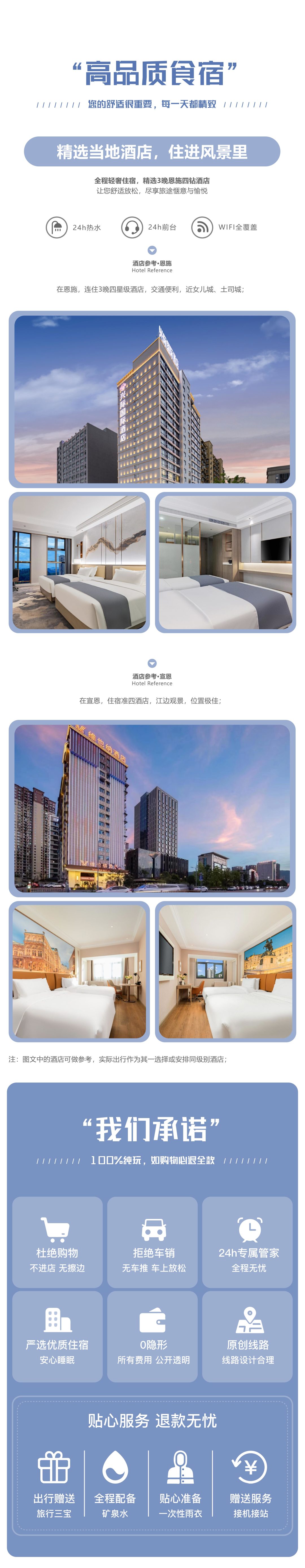 2、住宿:3晚恩施四钻酒店(参考希璞酒店、住景国际酒店、华睿丽嘉酒店)、1晚宣恩准四酒店(参考维也纳酒店、亚悦酒店、金源国际酒店等);