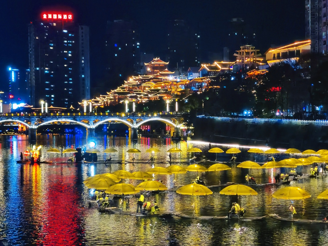 看文澜桥的灯光熠熠,体验江中竹筏的惬意,两岸特色烤鱼的香味也在勾搭你的味蕾。