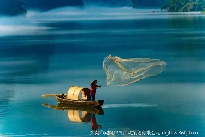 清晨早起,倚叠翠山岚,在雾气氤氲中看渔家踏歌而来,斗笠蓑衣,信手抛网,一派山林野趣。