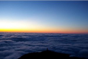 太阳的光一点一滴地穿过茫茫云海,天山一色。