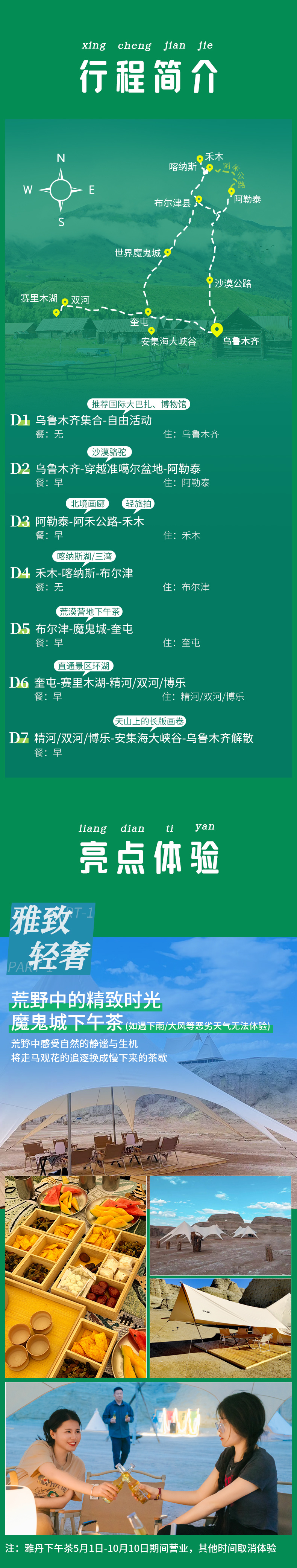 4、门票:禾木门票+区间车,喀纳斯门票+区间车,魔鬼城门票+小火车,赛里木湖自驾票;