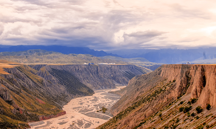 12:00抵达【安集海大峡谷】。在天山山脉,通过长年冲刷,在通古特附近冲出天山峡谷,在天山北坡下形成了规模宏大的冲积扇,河谷冲积扇规模宏大,以伞形向北张开,堪称地质奇观。站在山顶往谷底看,十分震撼。