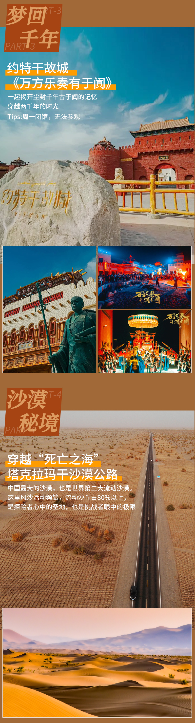 阿拉尔-沙漠公路-约特干故城大型表演-和田(450KM约7小时)