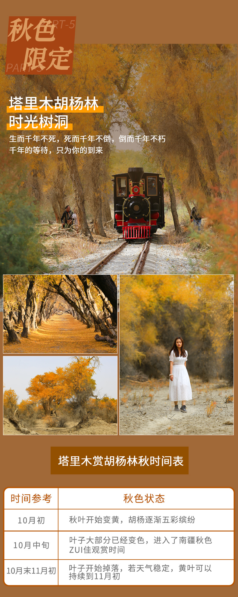 1. 南疆胡杨林最佳观赏时间在每年的10月15日左右,随天气变化而定。团期不能保证是最佳观赏期,请大家合理期待。