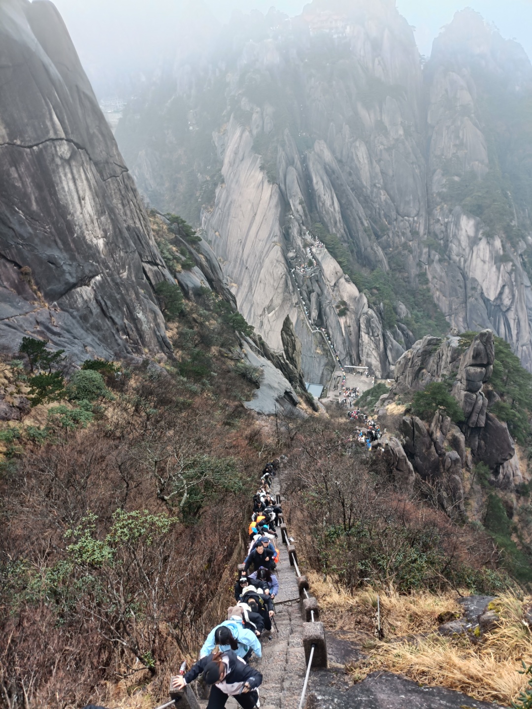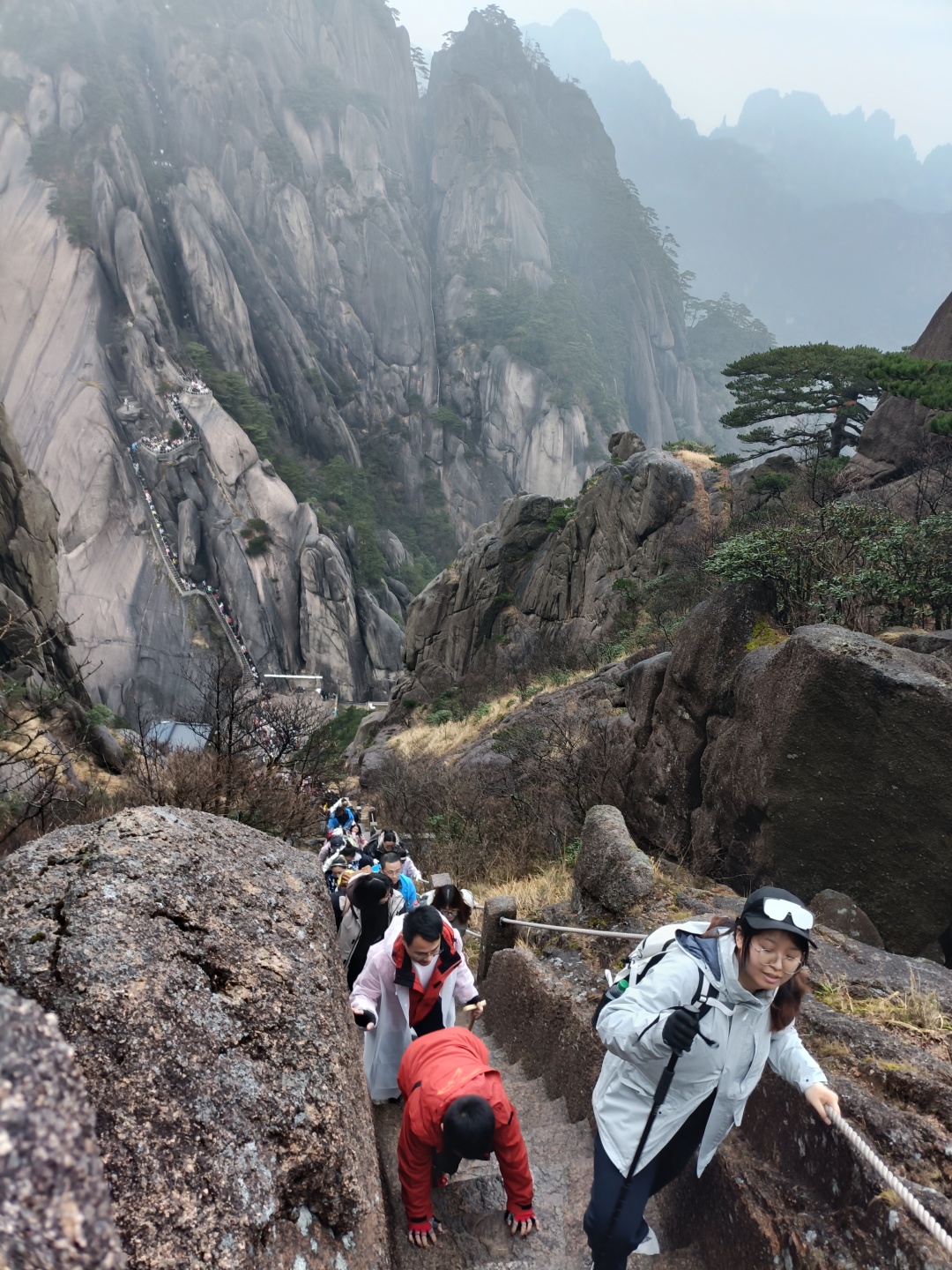 05:20 天都峰新道口排队(恐高者请勿前往,新道口上老道口下120分钟)