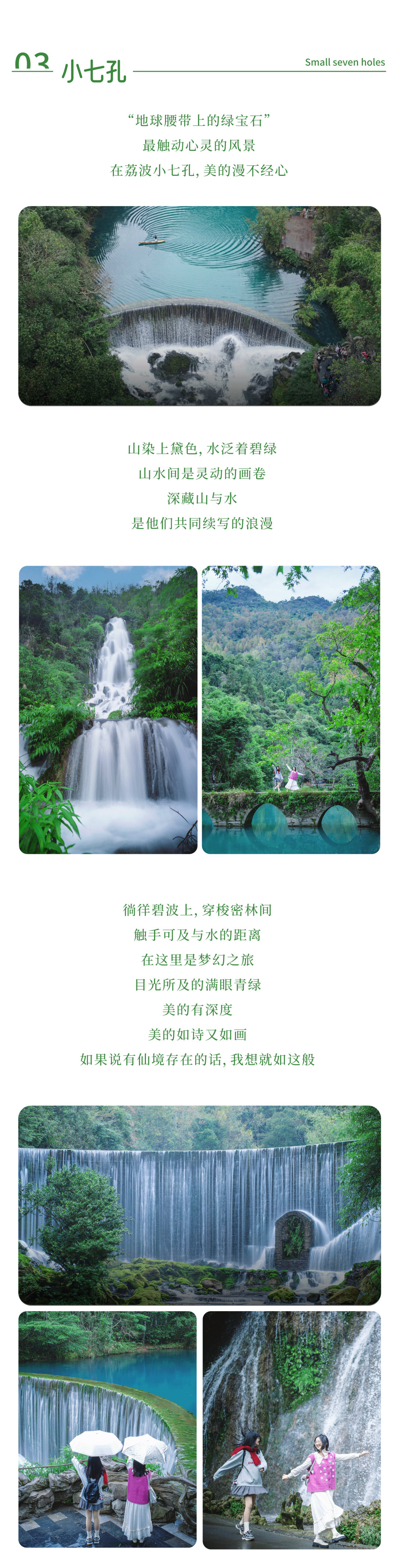 ① 小七孔景区内没有餐厅,但每个站点均设有服务区,可购买零食、饮料和水、部分服务区提供有粉面等简餐可选,如有特殊需求可自行携带食品解决午餐。