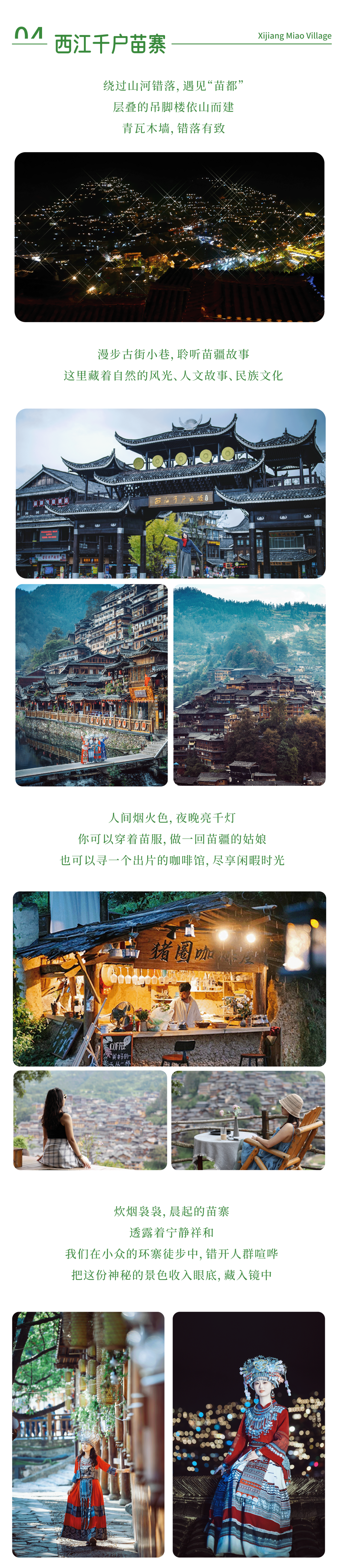 夜晚的西江是最漂亮的,万千灯火之下像极了宫琦骏的千与千寻。在如此美妙的世界里,怎么么可以不来上一组美美的旅拍大片呢?注:旅拍属自费顶目,西江苗寨内有特别多的旅拍点,价格从99-599不等,大家根据自己的需求购买;