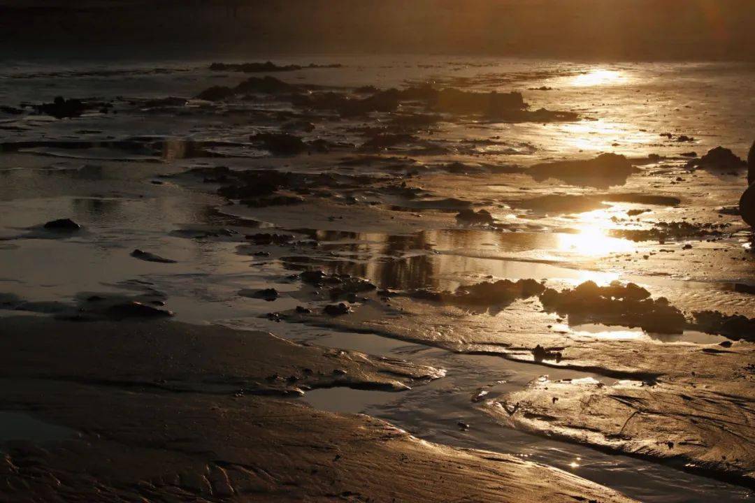 咸台湾的沙子十分细软,在沙滩上留下了一道道海水沖上岸边的痕迹,
