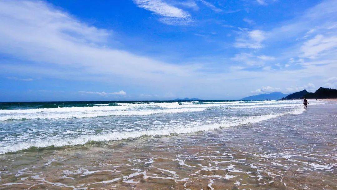由于新开发的沙滩,目前人少,交通便利,大巴车直达停车场,下车后10分钟到沙滩。