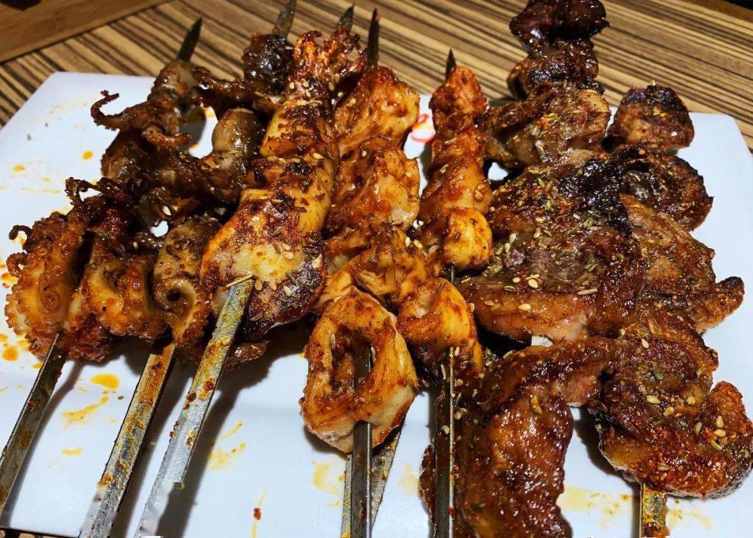各种海鲜、鸡腿、鸡翅、肉丸、玉米、茄子......歌声、欢笑加游戏。一边烧烤边一边欣赏无敌海景和美丽夜色,人生得意须尽欢,快乐之事莫过于此!