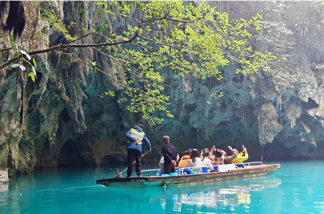 2022年,《航拍中国》第四季也来到了广西河池,对都安地下河国家地质公园进行了拍摄——“盛夏时节,看起来像海的颜色,很难不吸引人们飞身一跃”