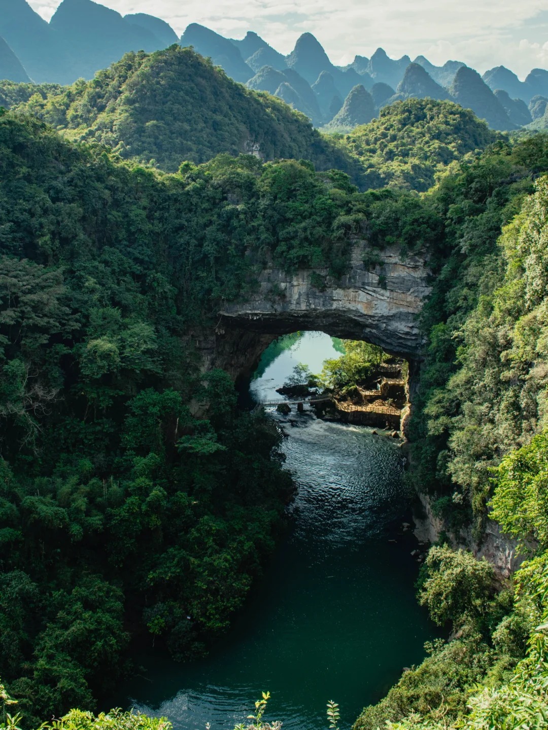 在都安地下河国家地质公园,拥有300多个,分布密度大、观赏性极好的地下河天窗群,都安因此被誉为“世界天窗之都”、“潜水天堂”