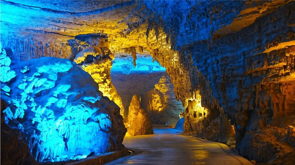 洞天盛境是国内罕见的总长约3公里的地下大峡谷,步入光怪陆离的洞天秘境,仿佛穿梭于时间与空间的裂缝之中。这里是明星同款打卡地,沿着曲折蜿蜒的栈道缓缓深入,演员王丽坤曾驻足的地方逐渐映入眼帘。