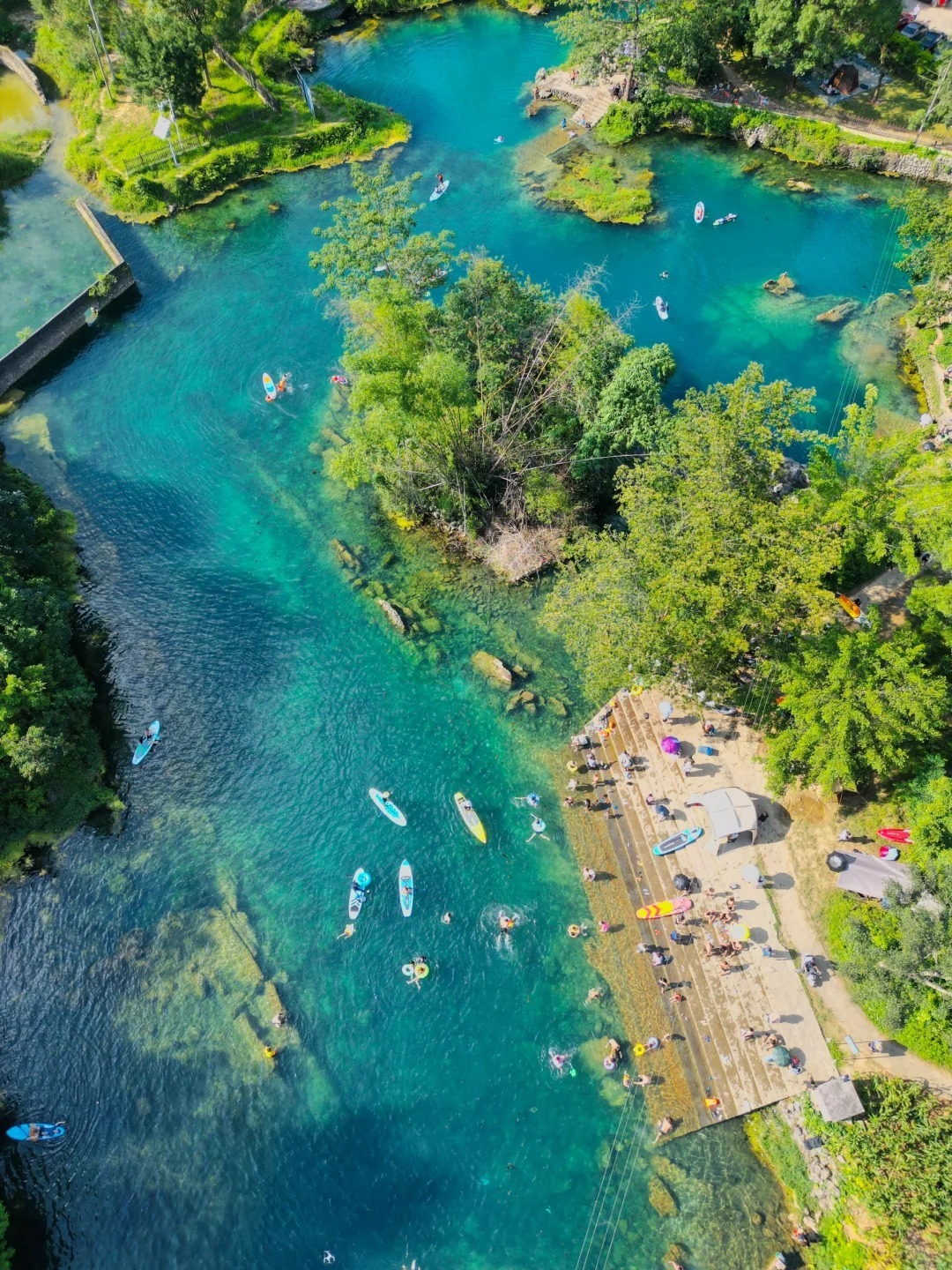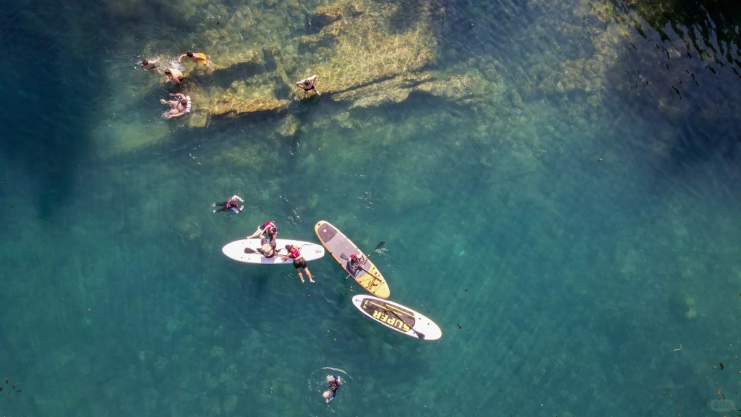 每到夏天就会有特别多的年轻人会来到这里玩浆板,清澈的水让浆板似漂浮在空中,特别神奇。