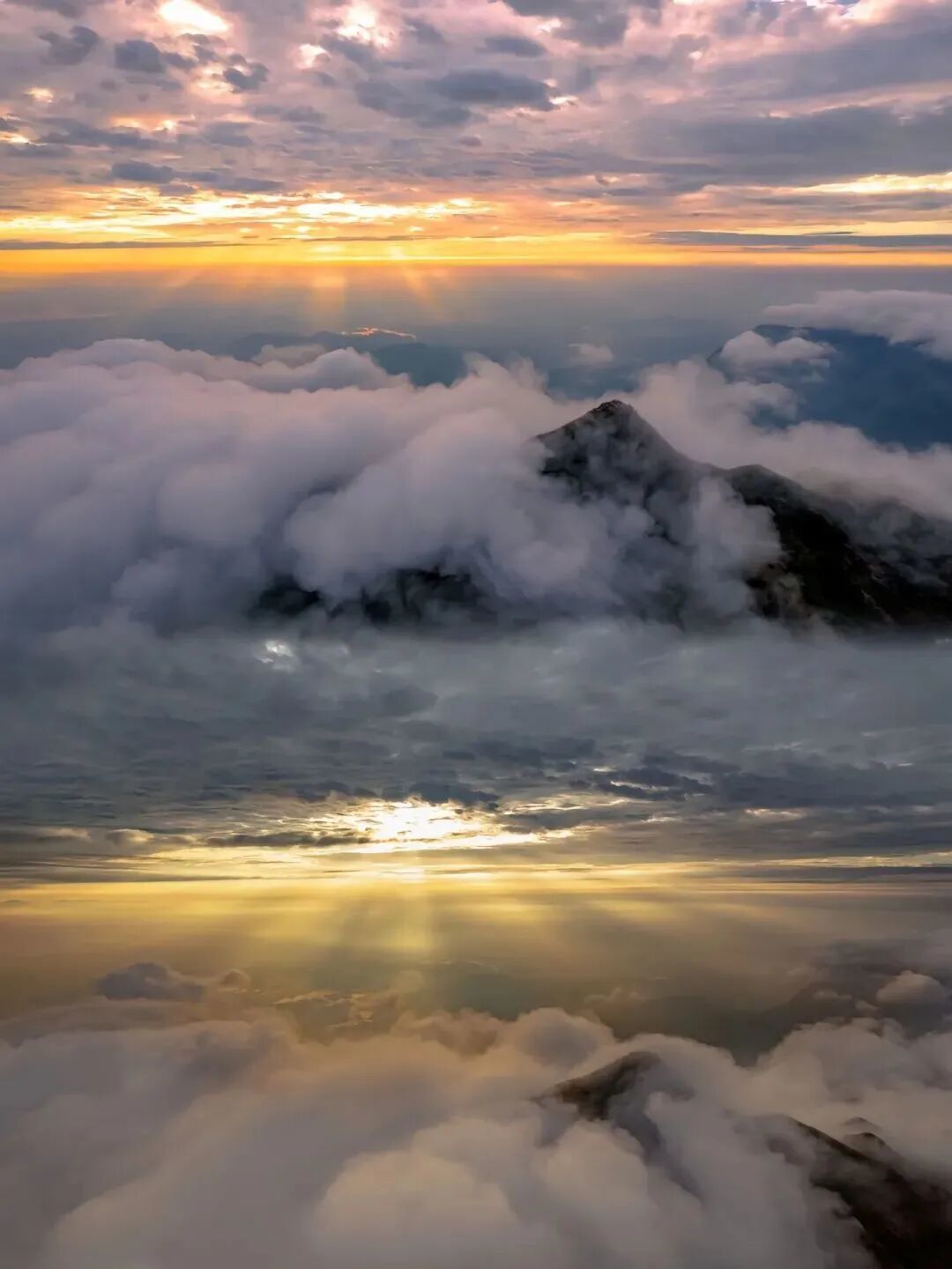 云海涌起时,只有小小的山头屹立于云海之上,让人有一种升仙的感觉。当然,云海需要一定的运气和好天气才可以看到。