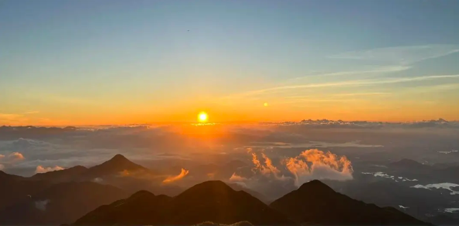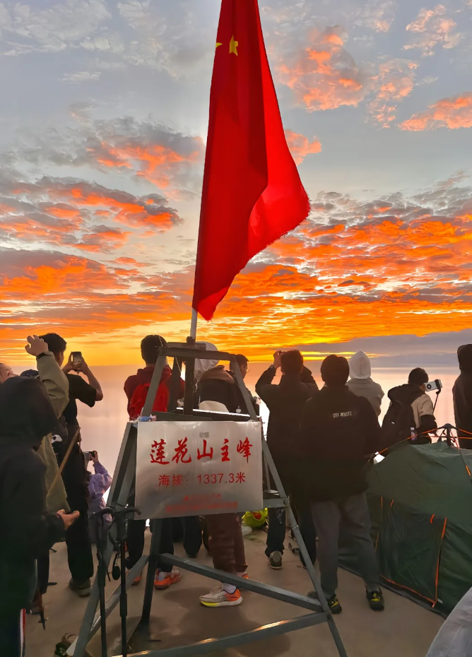 作为粤东沿海第一高峰,海丰莲花山海拔1337米,峰顶是一个十分凸出的平台,作为一个高耸独立的山头,在周围的山峰中属于鹤立鸡群,因此是看日出和云海的绝佳位置。