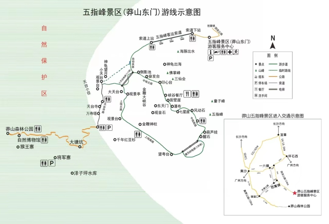 2、莽山五指峰门票+往返索道130元/人(领队车收取)