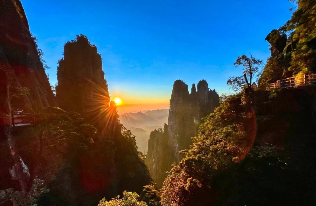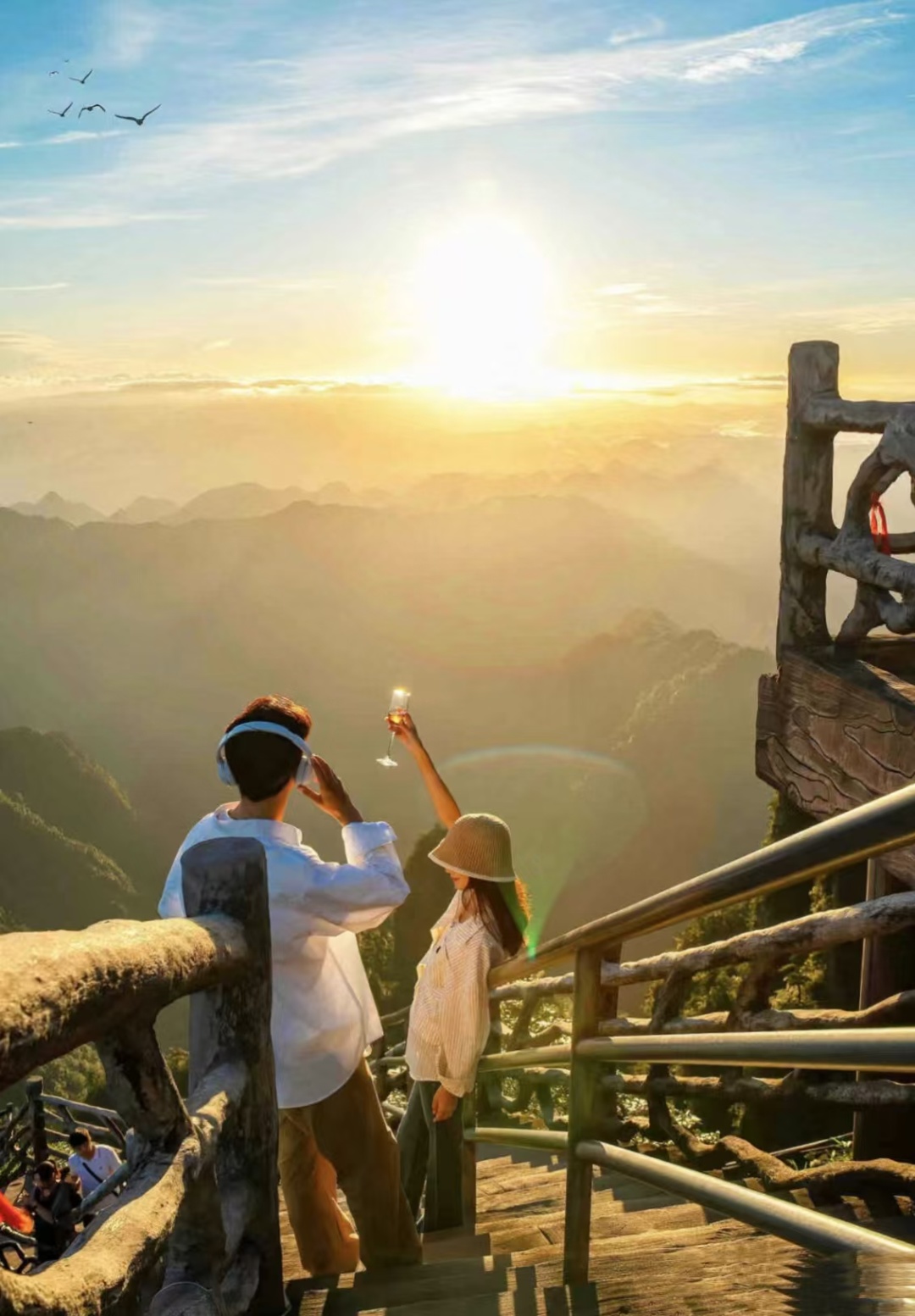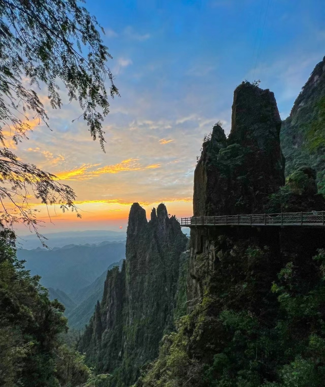 08:00 深度游览五指峰景区,漫步悬空栈道,南中国最长的悬空栈道,总长约8公里;