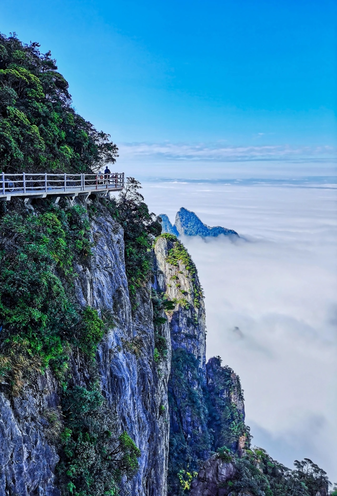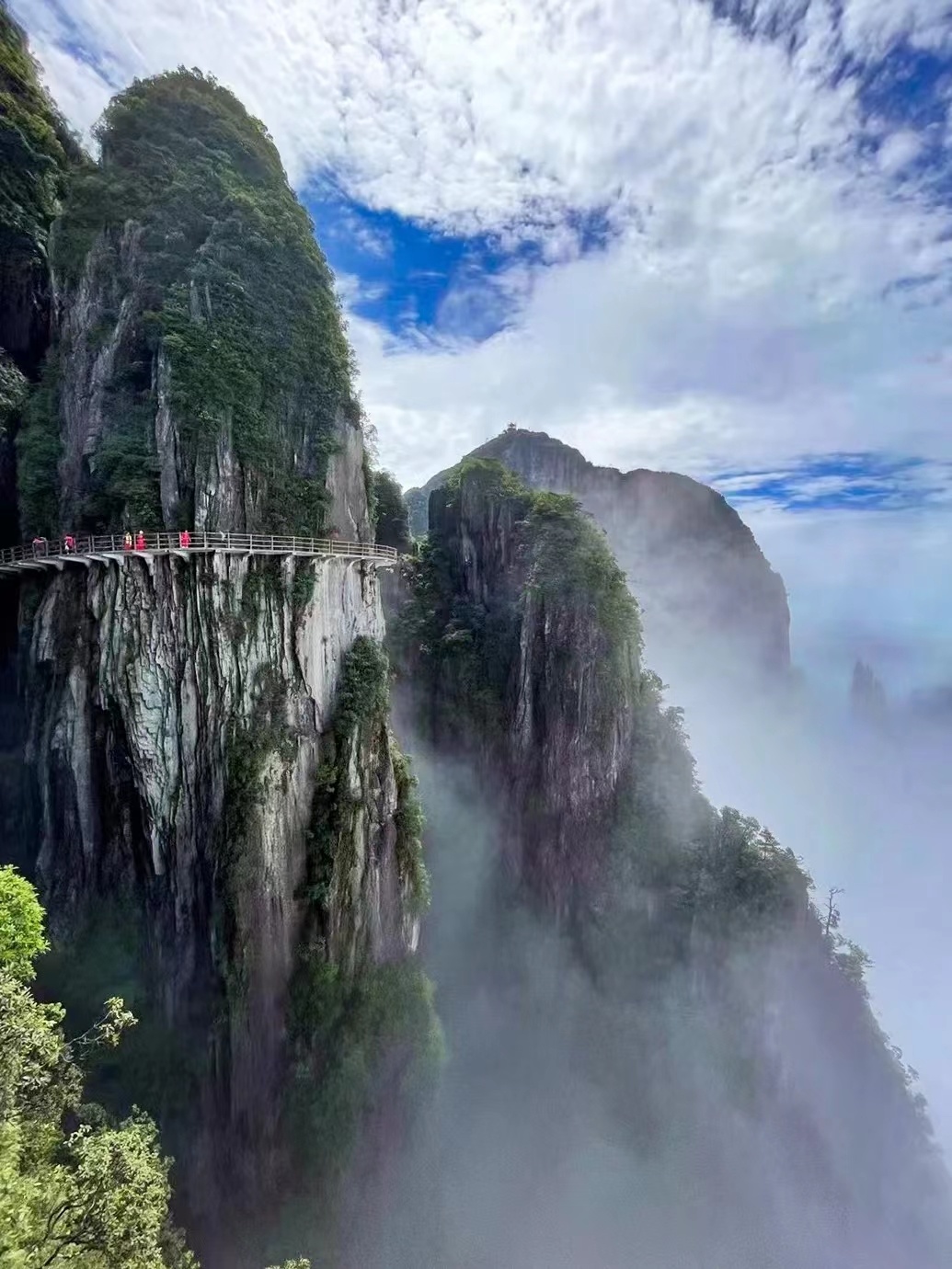 悬崖栈道上漫步,看流云飘动,呼吸山间最新鲜的自由空气