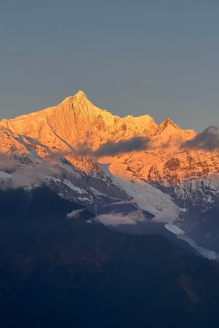 梅里雪山,以其无可比拟的神圣性与神秘性,稳坐藏区八大神山之首的宝座。主峰卡瓦格博,海拔高达 6740 米,宛如一柄利剑直插云霄,成为云南第一高峰。早在 20 世纪 30 年代,美国学者洛克博士就毫不吝啬对它的赞美,称卡瓦格博峰为“世界上醉美之山”。