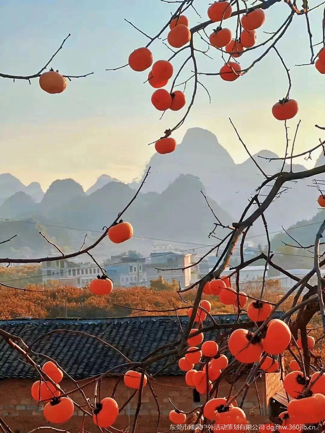 “中国第一月柿之乡”恭城红岩村,枝头满果,红红火火。