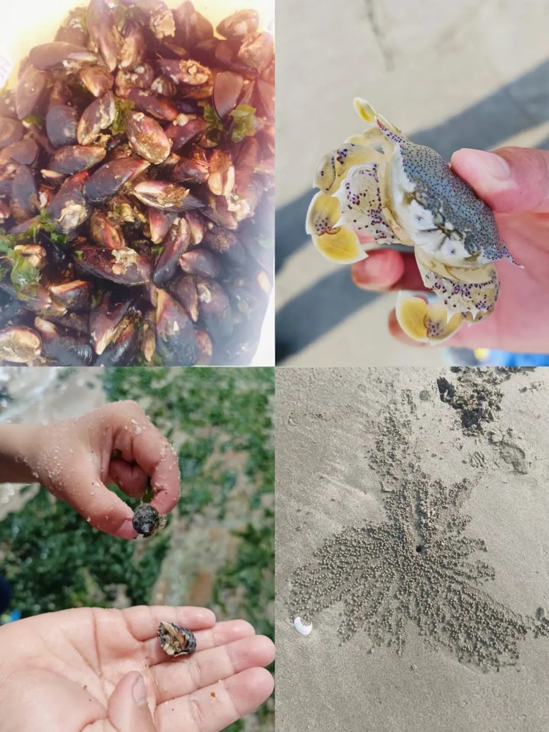每天当地人还会在海岸拾贝捕鱼。偶遇搁浅沙滩的鲸鱼,晶莹剔透的水母,五彩斑斓的寄居蟹。因沙细水浅,在沙滩上行走,容易拍出倒影,有天空之镜之感。
