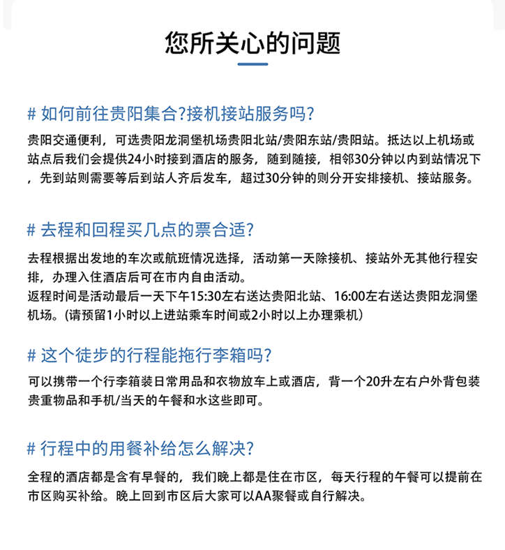 ② 早到的小伙伴如未到酒店入住时间,可寄存行李,先行游玩。领队会在集合当天下午在活动群内发布第二天行程需要准备的物品和注意事项及告知次日行程安排。