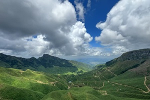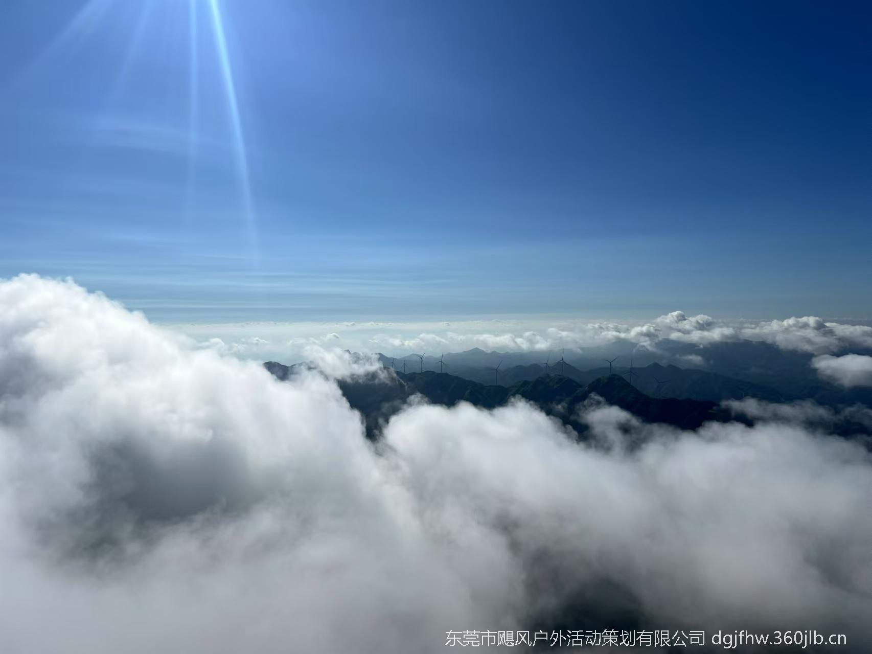 夏季雨后放晴时,是大圣山云海最为壮观的季节。登至高处,白色风车散落山峦间,在云海中若隐若现。置身于云海峰巅,颇有一番“会当凌绝顶,一览众山小”的豪情