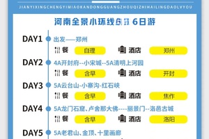 2、因产品为全国大散拼,游客离开河南的时间不尽相同,导游会以最早返程客人的时间安排整团游览时间,一般行程结束时间和地点:郑州火车站16:00后,郑州高铁站17:30后,郑州新郑机场18:30后,请合理安排返程交通。