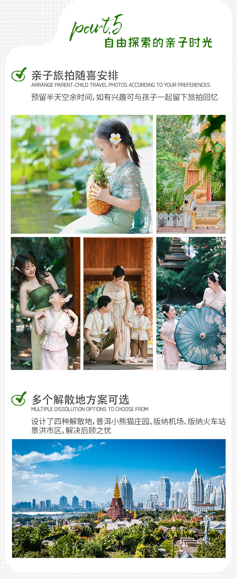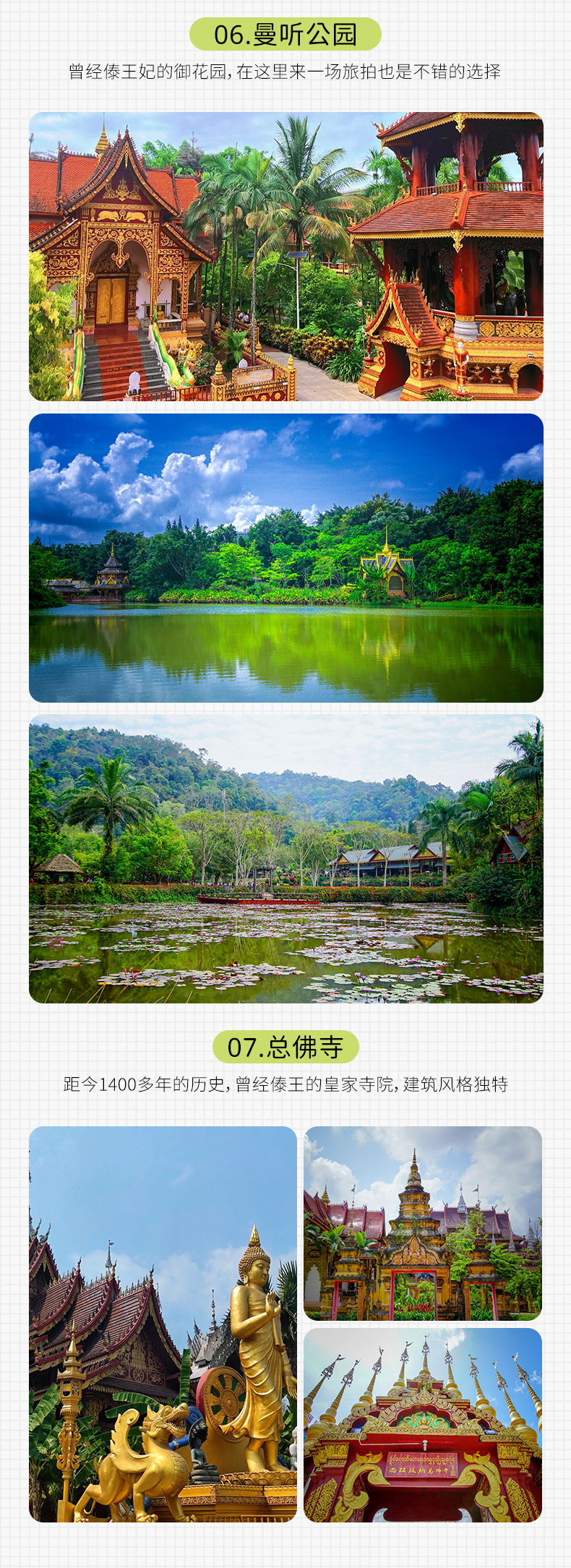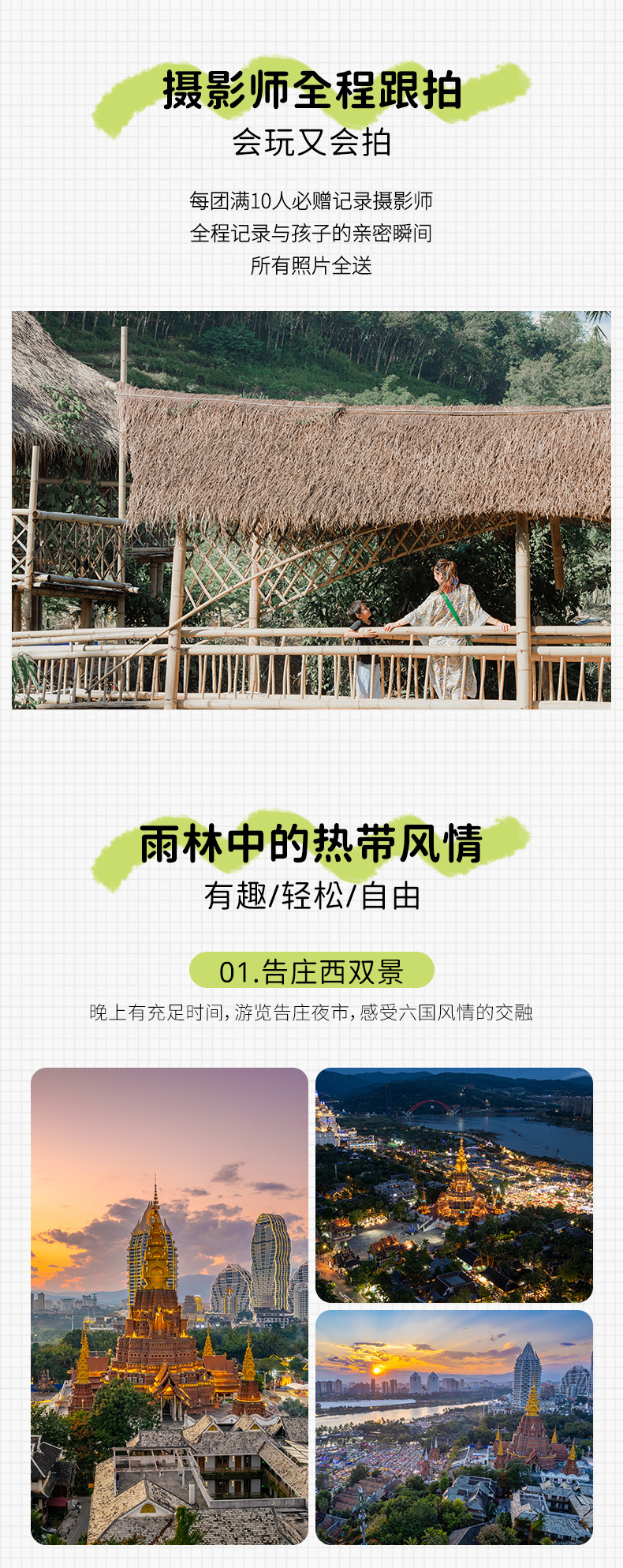 2、今日下午预留出部分可自由安排的时间,大家如对旅拍感兴趣,可以自由网上提前预约好喜欢的摄影师进行旅拍活动哦,我们包含了曼听公园的门票,如选择自行前往曼听公园,可持付款记录找领队报销门票;