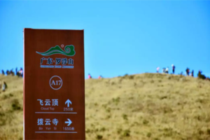 行走至景区分水坳驿站处开始便开始走台阶路,在分水坳驿站处可以进行简单的补给,一直到飞云顶,海拔1296米,便可尽情拍照打卡。