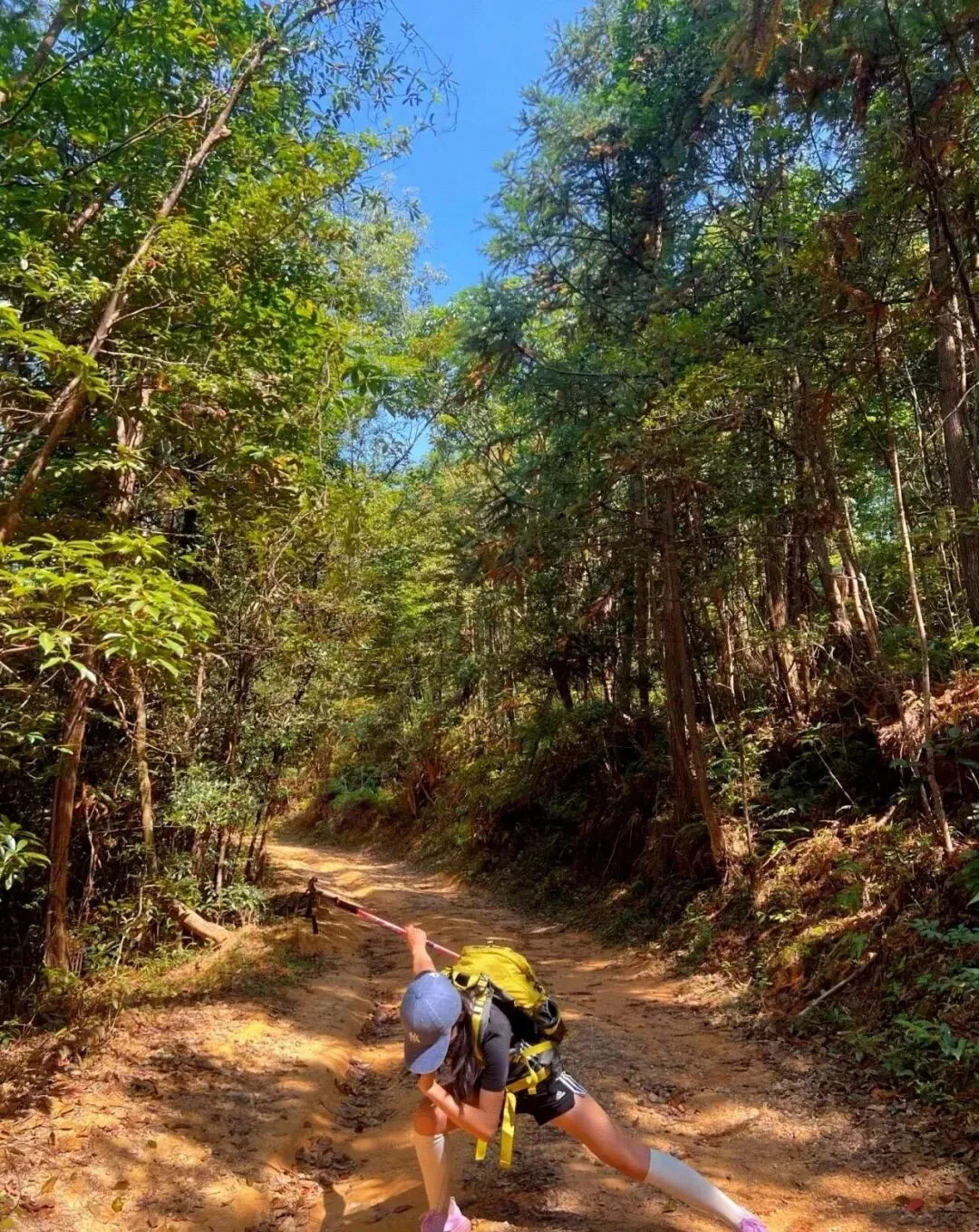中等:参考大南山精华线,能爬升1000米高+走18公里长,适宜年龄18-55岁
